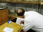 Termingemäß wurde am Donnerstag das lange Wochenende zur 18. Kreiskaninchenschau gestartet. Erster Höhepunkt und mit Spannung erwartet, war die Bewertung der Kaninchen durch die sechs Preisrichter und einem Obmann. Mir als Fotografen bot sich ein reges Treiben, viele fleißige Zuträger waren zu Gange, ein paar neugierige Züchter, vor allem die kleinsten unter den Jugendlichen, verfolgten mit Spannung die Bewertung. Aber nicht nur im Ausstellungsraum war etwas los, da gab es noch das Ausstellungsbüro in dem die administrativen Arbeiten zu verrichten waren, Bewertungskarten mussten vergeben werden und die Bewertungs-Ergebnisse wurden in der EDV verarbeitet. Viele Hände waren auch wieder für die Verpflegung nötig und man genoss nach getaner Arbeit die deftige Brotzeit.