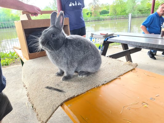 Erst wurden zwei Rammler der Rasse Kleinsilber blau vorgestellt. War bei dem einen das Fell zu dicht